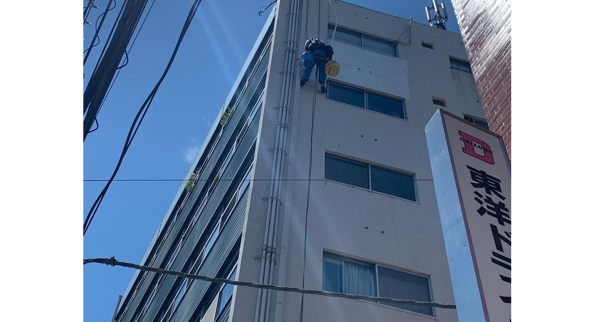7階建ての6階に室内機、屋上に室外機。 配管新設。 ちなみに、ブランコ作業は弊社ではありません!怖いので!